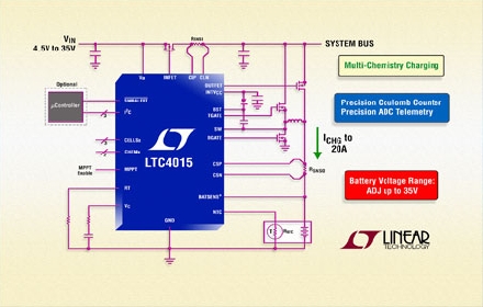 Linear推出高集成度、高壓、同步降壓型電池充電器控制器 LTC4015,該控制器支持多種電池化學(xué)組成,并具內(nèi)置遙測功能。該器件從交流適配器、太陽能電池板、鋰離子 / 聚合物、磷酸鐵鋰 (LiFePO4) 或鉛酸電池組等各種輸入源高效地傳送功率,系統(tǒng)負(fù)載可高達(dá) 35V。LTC4015 提供先進(jìn)的系統(tǒng)監(jiān)視和管理功能,包括電池庫倫計(jì)數(shù)和健康狀況監(jiān)視。當(dāng)要求主微控制器訪問 LTC4015 最先進(jìn)的功能時(shí),可以選擇使用 I2C 端口。該產(chǎn)品的主要充電功能可以利用引腳搭接配置和設(shè)定電阻器來調(diào)節(jié)。