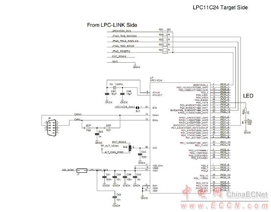 圖9.LPCXpresso LPC11C24目標板電路圖(1)