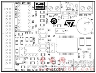 圖5.馬達驅(qū)動板EVAL6235PD PCB元件布局圖(頂層)