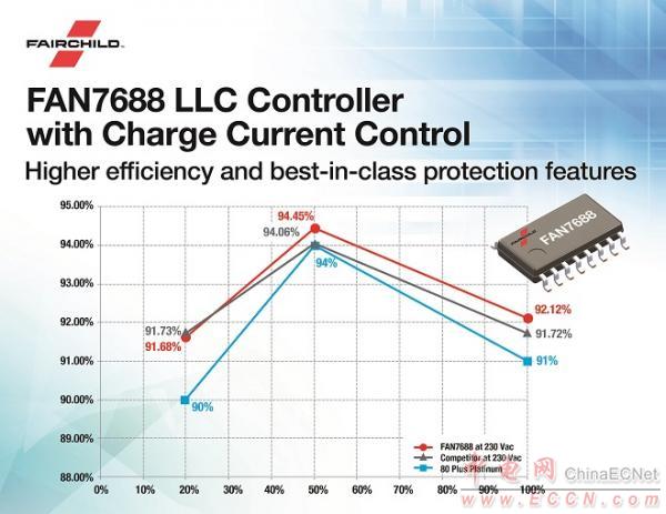 FAN7688采用了Fairchild創(chuàng)新性的充電電流控制技術(shù),能夠獨(dú)一無二地采用電流模式控制,有別于其他傳統(tǒng)LLC解決方案中采用的電壓模式控制。作為業(yè)內(nèi)首款且唯一的帶電流模式控制和同步整流功能的LLC諧振控制器,F(xiàn)AN7688不僅能夠針對(duì)負(fù)載快速變化實(shí)現(xiàn)更精確、更快速的輸出調(diào)節(jié),同時(shí)簡(jiǎn)化了控制回路,與傳統(tǒng)LLC諧振控制器相比,更易設(shè)計(jì)集成到電源系統(tǒng)中。另外,F(xiàn)AN7688的自適應(yīng)雙緣次級(jí)端同步整流控制方法確保了負(fù)載和線路瞬變期間的高可靠性和穩(wěn)定的同步整流操作。