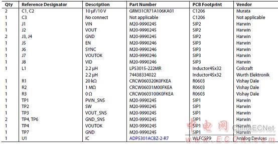 評估板ADP5301-EVALZ材料清單: