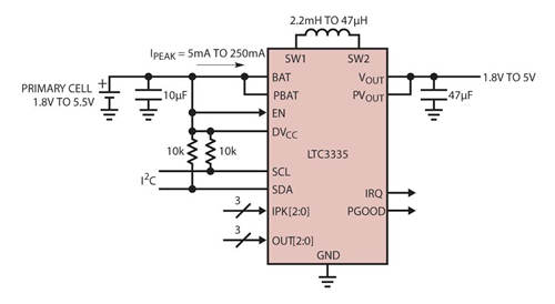 圖 2:LTC3335 毫微功率降壓-升壓型轉(zhuǎn)換器的典型應用原理圖