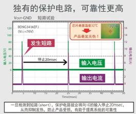 本產(chǎn)品具備獨(dú)有的保護(hù)功能,即使輸出引腳發(fā)生意外短路,也可抑制發(fā)熱,防止產(chǎn)品受損。因此,非常有助于提高應(yīng)用產(chǎn)品的可靠性。
