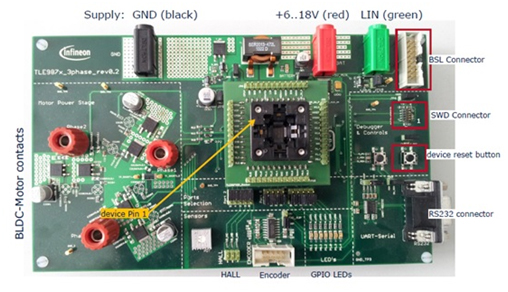 圖示1-大聯(lián)大品佳代理的英飛凌TLE987x驅(qū)動(dòng)和控制解決方案開發(fā)板照片