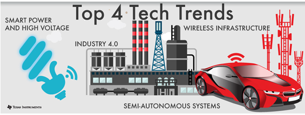 現(xiàn)如今,我們身邊的所有東西似乎都變得越來(lái)越智能,它們不僅可以通過(guò)網(wǎng)絡(luò)互聯(lián)實(shí)現(xiàn)更多的全新功能,同時(shí)也更進(jìn)一步地朝著電子化發(fā)展。近幾年,半導(dǎo)體技術(shù)領(lǐng)域的創(chuàng)新正推動(dòng)著包括個(gè)人電子、汽車(chē)、制造業(yè)和許多其它市場(chǎng)中全新產(chǎn)品的快速發(fā)展。接下來(lái),我們將介紹最值得關(guān)注的一些技術(shù)趨勢(shì),以及半導(dǎo)體行業(yè)在其中所發(fā)揮的作用,這些趨勢(shì)將會(huì)進(jìn)一步推動(dòng)很多全新市場(chǎng)的創(chuàng)新。