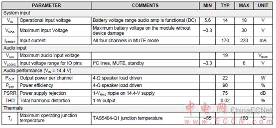 TAS5404-Q1主要特性: