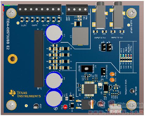 圖3.汽車四路D類放大器參考設(shè)計TIDA-00573外形圖