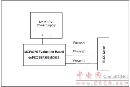 圖5.MCP8025 TQFP BLDC馬達(dá)驅(qū)動(dòng)評(píng)估板框圖