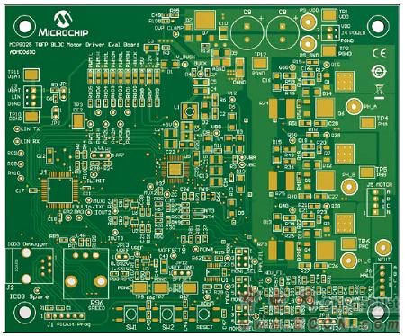 Microchip公司的MCP8025/6是三相無刷DC(BLDC)馬達(dá)柵極驅(qū)動(dòng)器,包括有三個(gè)能驅(qū)動(dòng)三個(gè)外接NMOS/NMOS晶體管對(duì)的半橋驅(qū)動(dòng)器,在12V時(shí)可提供0.5A的峰值輸出電流.器件集成了比較器,降壓穩(wěn)壓器,兩個(gè)LDO穩(wěn)壓器,電源監(jiān)測(cè)比較器,超溫傳感器,LIN收發(fā)器,零交叉檢測(cè)器,中性模擬器和運(yùn)算放大器.主要用在汽車燃料泵,水泵和通風(fēng)馬達(dá),家用電器,PMSM控制,業(yè)余愛好飛機(jī),船和卡車.本文介紹了MCP8025/6主要特性,框圖和典型應(yīng)用電路,以及MCP8025 TQFP BLDC馬達(dá)驅(qū)動(dòng)評(píng)估板主要特性,框圖,電路圖,材料清單和PCB設(shè)計(jì)圖.