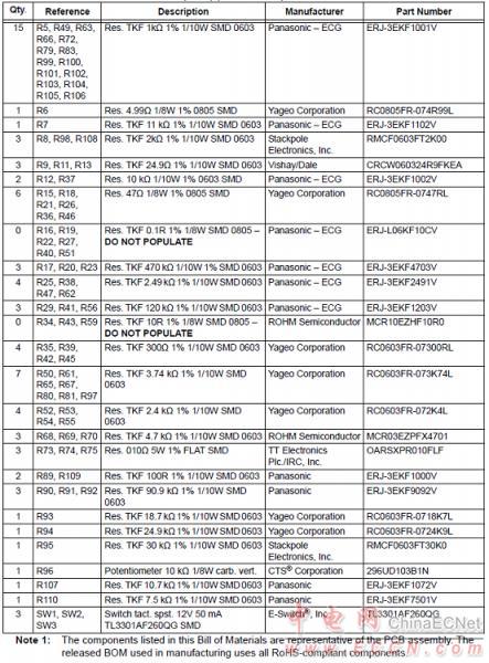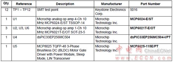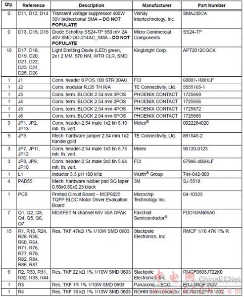 MCP8025 TQFP BLDC馬達(dá)驅(qū)動(dòng)評(píng)估板材料清單:
