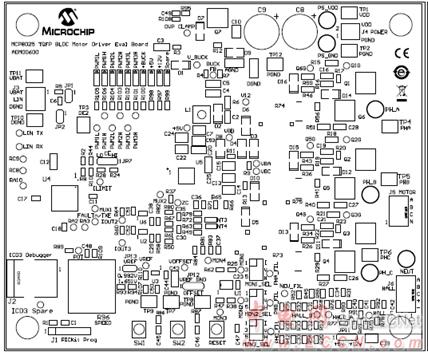圖8. MCP8025 TQFP BLDC馬達(dá)驅(qū)動(dòng)評(píng)估板PCB元件布局圖