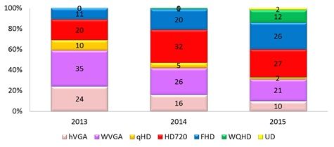 FHD(Full High Definition)即全高清,分辨率可以達(dá)到1920 x 1080。隨著消費(fèi)者對手機(jī)分辨率的要求不斷提升,一度占據(jù)手機(jī)市場主流的WVGA分辨率逐漸被HD720(1280 x 720)和FHD取代,手機(jī)屏幕分辨率跨入全高清時(shí)代(如上圖)。