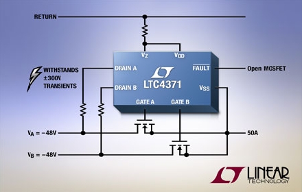 Linear推出堅(jiān)固的理想二極管“或”控制器 LTC4371