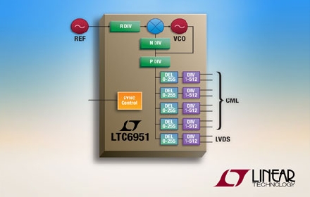 Linear推出低相位噪聲整數(shù)N合成器LTC6951,該器件集成了 VCO 和超低抖動時(shí)鐘分配電路,非常適合為數(shù)據(jù)轉(zhuǎn)換器提供時(shí)鐘。LTC6951 提供 4 個(gè)高性能電流模式邏輯 (CML) 輸出,每個(gè)輸出都配備了一個(gè)獨(dú)立的低噪聲時(shí)鐘分頻器和數(shù)字延遲構(gòu)件,以涵蓋從 1.95MHz 到 2700MHz 的寬頻率范圍。當(dāng)以高輸入頻率和快速輸出數(shù)據(jù)傳送速率為數(shù)據(jù)轉(zhuǎn)換器提供時(shí)鐘時(shí),憑借總的115fsRMS絕對抖動 (SNR 方法),LTC6951 可提供實(shí)現(xiàn)最佳 SNR 所必需的低抖動時(shí)鐘。