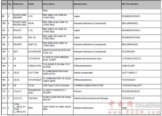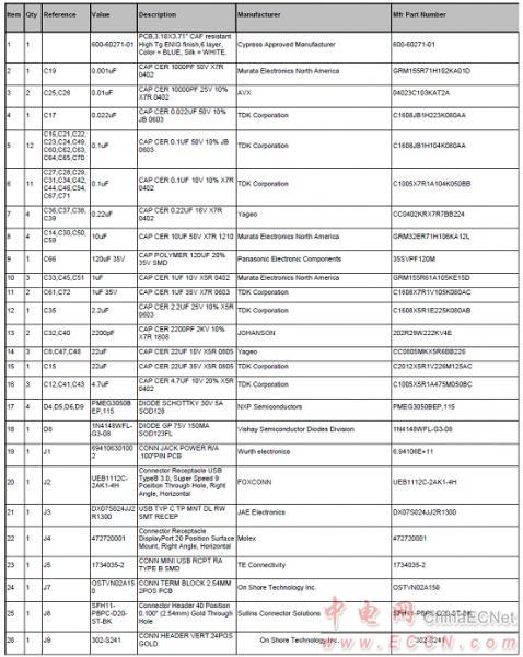 CY4541 EZ-PD™ CCG4評估套件(EVK)材料清單: