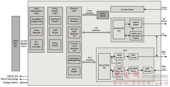 圖1.USB Type-C物理層和電源檢測協(xié)議高級功能框圖