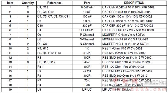 USB CD/PD充電器解決方案(非容性電纜)電路材料清單:
