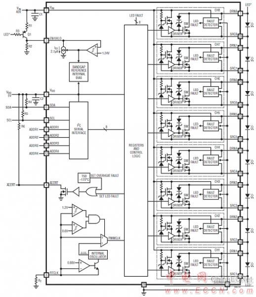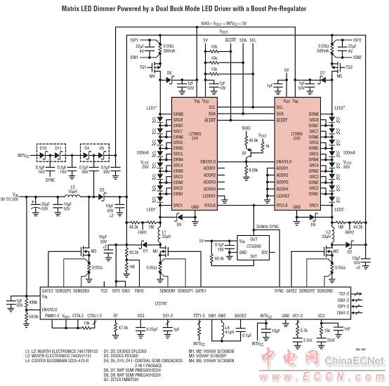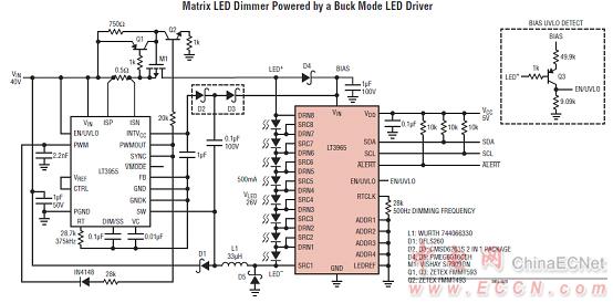LT3965八開關(guān)矩陣LED調(diào)光器系統(tǒng)方案