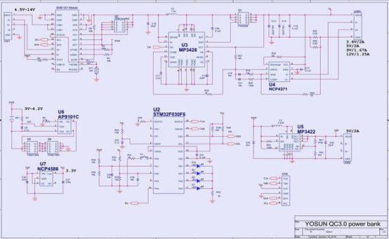 圖示3-大聯(lián)大友尚推出的雙向QC3.0快充移動電源完整解決方案之線路圖