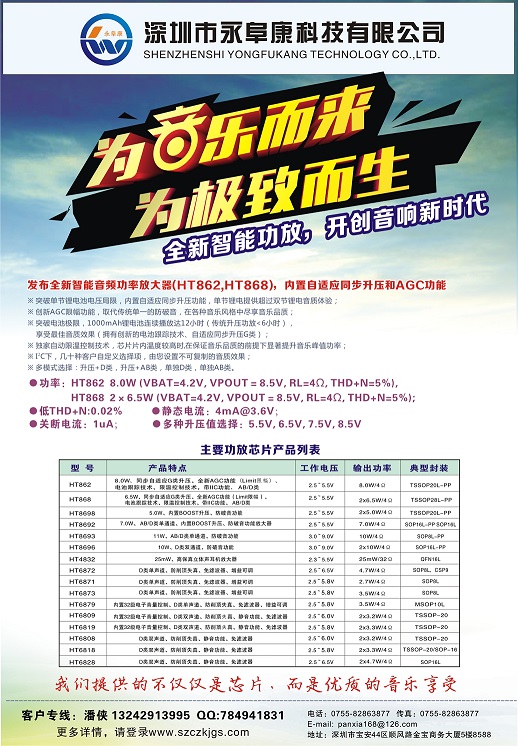·I2S數(shù)字功放IC/內(nèi)置DSP音頻算法功放芯片  ·馬達(dá)驅(qū)動(dòng)IC  ·2.1聲道單芯片D類功放IC  ·內(nèi)置DC/DC升壓模塊的D類功放IC  ·鋰電充電管理IC/快充IC  ·無(wú)線遙控方案  ·直流無(wú)刷電機(jī)驅(qū)動(dòng)芯片