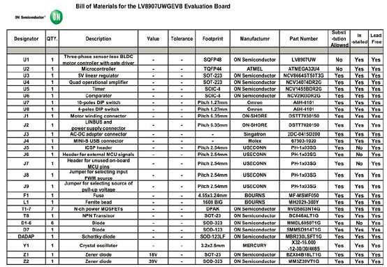評估板LV8907UWGEVK材料清單: