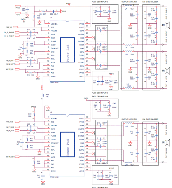 圖5. 評(píng)估板TPA3116D2EVM電路圖