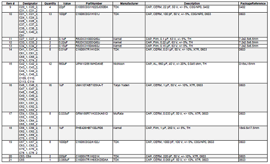 PMP11769 700W汽車D類音頻放大器參考設(shè)計(jì)材料清單: