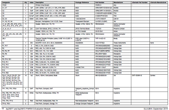 BQ25871EVM-813充電器評(píng)估模塊材料清單: