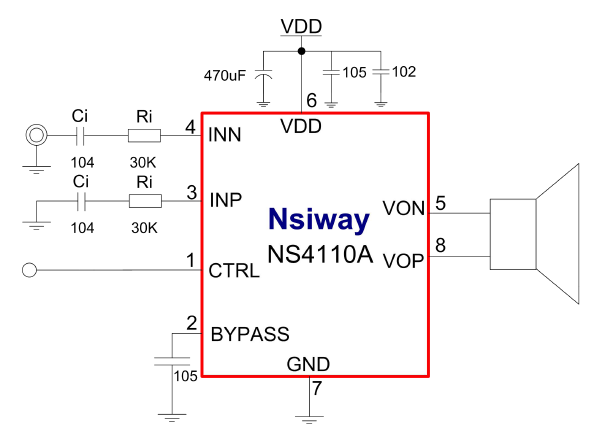 NS4110A主要應用于拉桿音箱,家庭式影音系統(tǒng)等。極高的工作效率既能保證長時間的續(xù)航,又能保證較大功率的音頻輸出,是拉桿音箱產(chǎn)品的最佳選擇。芯片采用創(chuàng)新的電路設(shè)計,保證了高保真度的音頻輸出,讓各頻段的音樂信號完美重現(xiàn)。芯片采用極小面積,帶散熱片的eSOP8封裝,具有極高的散熱效率,在高溫環(huán)境下表現(xiàn)出了良好的穩(wěn)定性。外部精簡的元件極大地降低了設(shè)計成本,適合多種移動智能化的家庭式影音產(chǎn)品。