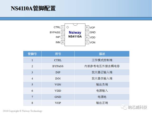 | NS4110A ESOP-8小封裝20W單聲道D類功放IC產(chǎn)品簡介 |