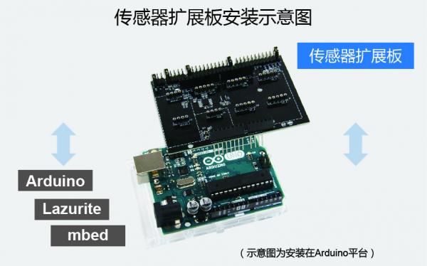 傳感器擴(kuò)展板通過與在全球應(yīng)用廣泛的Arduino Uno等連接并