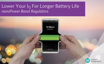 Maxim推出MAX17222nanoPower boost (升壓調(diào)節(jié)器),具有業(yè)內(nèi)最高效率和300nA最低靜態(tài)電流(IQ),幫助可穿戴及消費類IoT設(shè)計以最小面積獲取最長電池壽命。MAX17222是一款輸入電壓范圍0.4V-5.5V,輸出電壓范圍1.8V-5V,輸入限流為500mA的升壓調(diào)節(jié)器,相比同類產(chǎn)品可減少多達50%的方案面積,同時提供95%的峰值效率,使發(fā)熱降到最低。MAX17222可理想用于各類可穿戴設(shè)備,據(jù)IDC預(yù)測將在2020年實現(xiàn)18.4%的年增長率(CAGR)。1