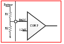 當(dāng)電池電壓降低的時(shí)候,CS8359C的最大輸出電壓幅值將會(huì)下降到1.6倍電池電壓,若電池電壓恢復(fù)上升,最大輸出電壓的幅值也會(huì)以1.6倍電池電壓升高,BAGC功能的實(shí) 現(xiàn)如下圖。