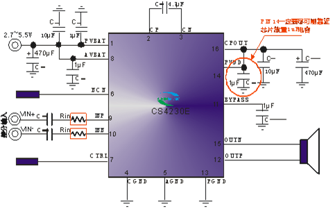 CS4230E的外圍只有低成本的阻窯器件,在以徨電池供電 的移動式音頻設(shè)備中,CS4230E是理想的音頻子系統(tǒng)的功 放解決方案.CS4230E的全差分架構(gòu)和極高的PSRR有效地提 高了CS4230E對RF噪聲的能力 。另外 CS4230E內(nèi)置了過流保護(hù),短路保護(hù)和過熱保護(hù),有效的保護(hù)芯片在異常的工作條件下不被損壞。