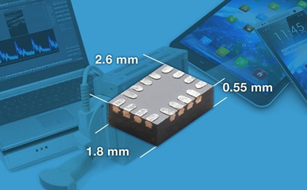 近似電阻值的對(duì)標(biāo)器件的電阻平坦度為500mΩ,而今天發(fā)布的這顆器件的平坦度為10mΩ,使THD達(dá)到-100dB。另外,DG2788A的寄生電容CON為26pF,COFF為14.5pF,比對(duì)標(biāo)器件低70%,-3dB帶寬為338MHz。開(kāi)關(guān)的電壓范圍達(dá)5.5V,可用在常見(jiàn)的5V工業(yè)設(shè)計(jì)中。如果使用5V操作電壓,對(duì)標(biāo)器件需要用更大的封裝尺寸,才能將電阻值降到0.5Ω以下。