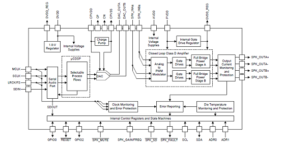lifier with integrated audioprocessor with up to 96-kHz architecture. To convertfrom digital to analog, the device uses a highperformance DAC with Burr Brown™ audiotechnology. It requires only two power supplies: oneDVDD for low-voltage circuitry and one PVDD for high-voltage circuitry. It is controlled by a softwarecontrol port using standard I2C communication.