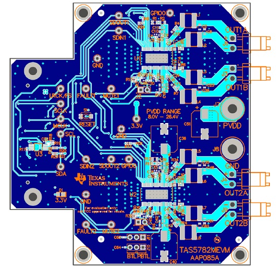 圖10.評估板TAS5782MEVM頂層元件裝配圖