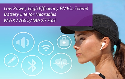| Maxim最新PMIC為耳戴式產(chǎn)品提供最低待機功耗和高效率,體積縮小一半以上 |