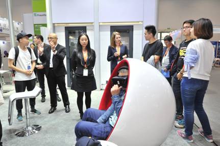 圖3:觀眾在Fraunhofer IIS展區(qū)體驗(yàn)VR影片