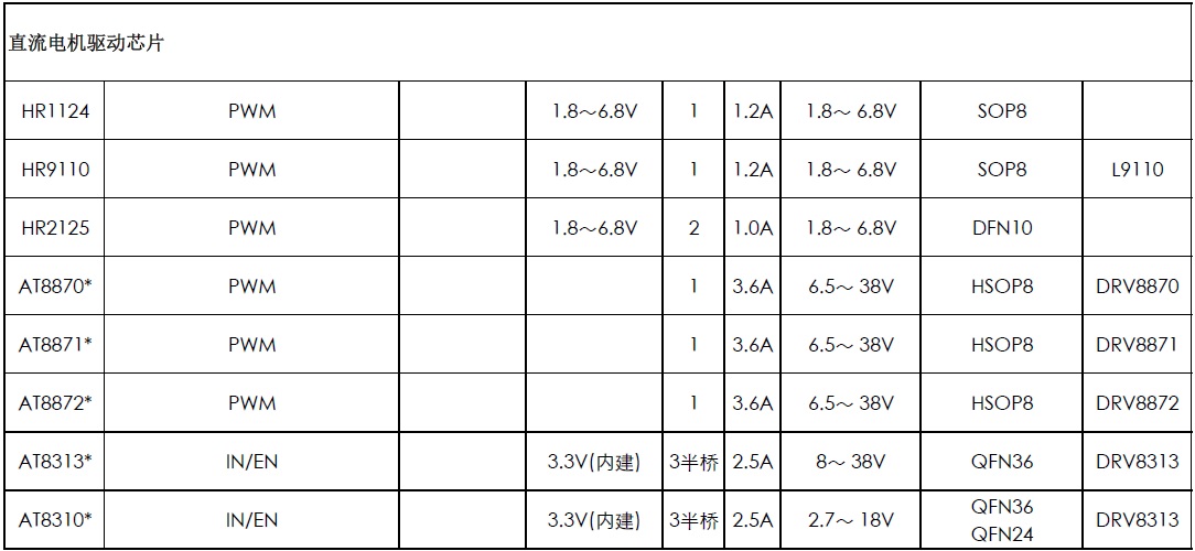 下表是HT馬達(dá)驅(qū)動(dòng)IC選型指南:
