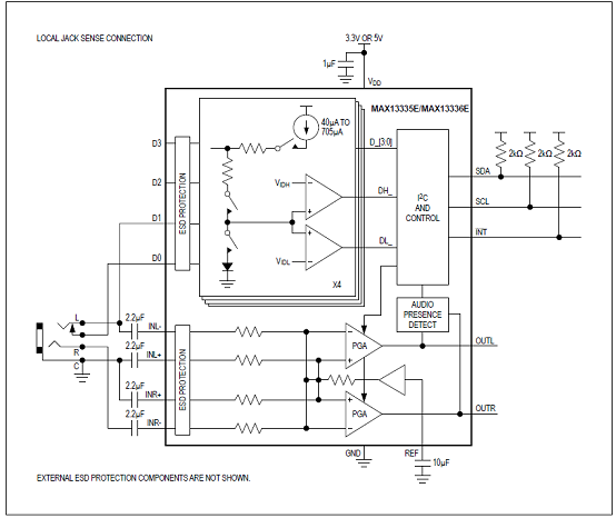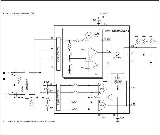 The MAX13335E/MAX13336E are high-fidelity stereo audio input amp