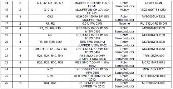 評估板BD99954MWV EVK材料清單: