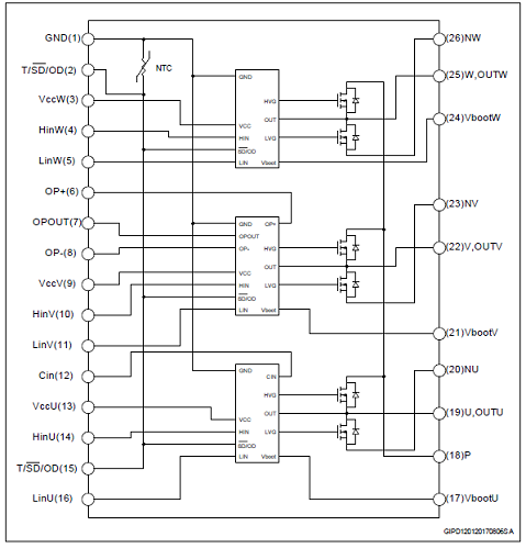 IPM 2 A,500 V, RDS(on) = 1.7Ω,3-phase MOSFET inverter bridge including control ICs for gate driving