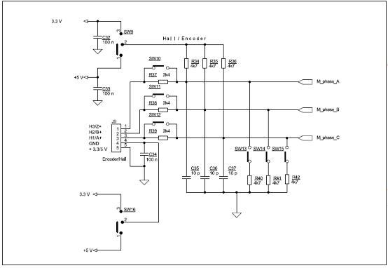 Hall sensors (3.3/5 V)/encoder inputs (3.3/5 V)