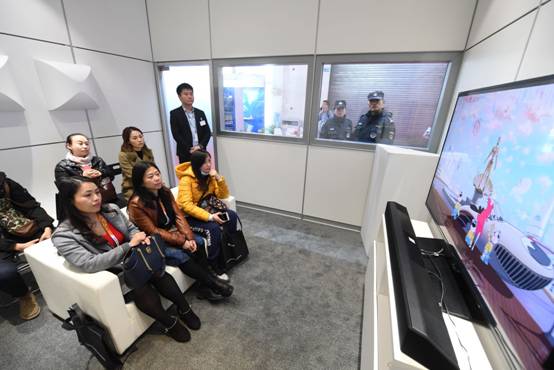 展示區(qū),在工作人員的引領下,記者體驗了支持MPEG-H解碼的3D Soundbar (條形音箱)原型機,感受到三維聲帶來的沉浸式視聽效果。