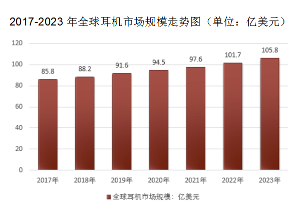 數(shù)據(jù)顯示,隨著全球耳機(jī)生產(chǎn)技術(shù)和材料的不斷升級(jí),智能產(chǎn)品市場(chǎng)的發(fā)展,全球耳機(jī)市場(chǎng)規(guī)模有望在2023年達(dá)到105.8億美元。在全球耳機(jī)出貨量穩(wěn)速增長(zhǎng)的情況下,耳機(jī)行業(yè)正在逐步升級(jí),主要表現(xiàn)為無(wú)線耳機(jī)替代有線耳機(jī),藍(lán)牙耳機(jī)占比提升,同時(shí)耳機(jī)走向智能化。