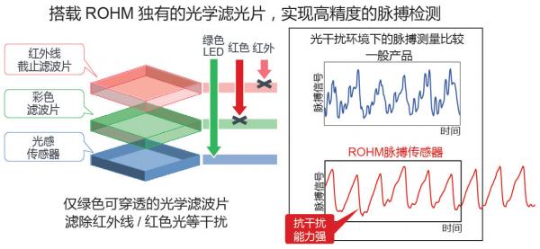 2. 采用ROHM獨(dú)有的光學(xué)濾光片,實(shí)現(xiàn)高精度檢測(cè)