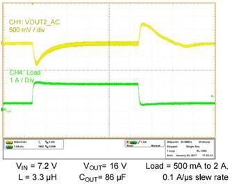 2) 負(fù)載變化瞬態(tài)響應(yīng) (0.5A-->2A):