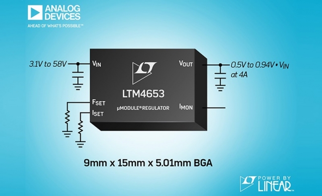 Analog Devices, Inc. (ADI) 宣布推出 Power by Linear™ LTM4653,這是一款 58VIN 降壓型 µModule® 穩(wěn)壓器。在工廠自動(dòng)化、工業(yè)機(jī)器人、通信基礎(chǔ)設(shè)施和航空電子系統(tǒng)等噪聲環(huán)境中,它能采用未調(diào)整或波動(dòng)的 24V 至 48V 輸入電源安全地工作。LTM4653 將輸入和輸出濾波器集成在一個(gè)封裝中,因而能夠滿足針對(duì)信息技術(shù)設(shè)備的 EN55022 Class B EMC 標(biāo)準(zhǔn)要求。低 EMI 架構(gòu)使其適合信號(hào)處理應(yīng)用,包括測(cè)試和測(cè)量、成像及 RF 系統(tǒng)。LTM4653 具有與 LTM4651 58VIN、4A 負(fù)輸出 µModule 穩(wěn)壓器相同的架構(gòu),因此 LTM4651 與 LTM4653 的組合非常適合在系統(tǒng)中產(chǎn)生一對(duì)正負(fù)電壓。