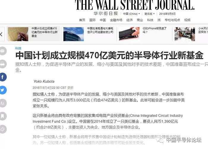 今年初就有傳聞稱國(guó)家準(zhǔn)備籌建大基金二期,不過當(dāng)時(shí)新聞報(bào)道的基金規(guī)模在1500-2000億元左右,與華爾街日?qǐng)?bào)報(bào)道的3000億元有所出入。